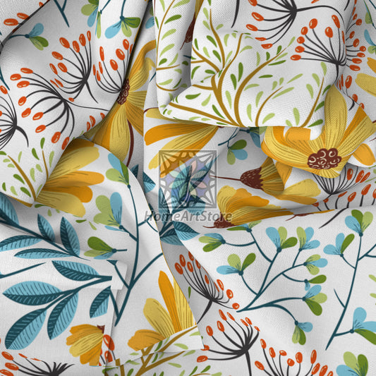 Floral Curtain, Botanical Yellow Flowers Curtain, Bohemian Art Curtain, Summer Decoration