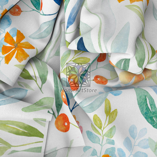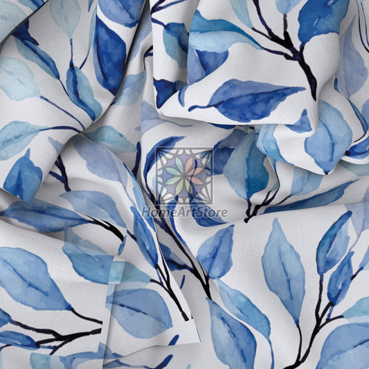 Blue Leaves Curtain, Watercolor Floral Curtain, Summer House Decor, Modern Kitchen Curtain, Botanic Curtain