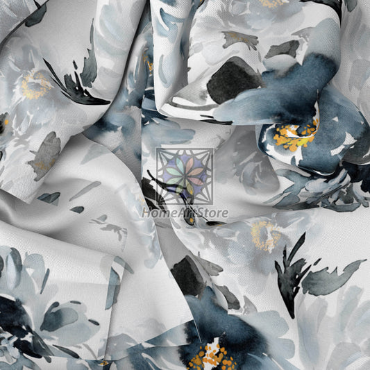 Dark Flowers Themed Curtain, Watercolor Floral Curtain, Luxury Living Room Curtain, Kitchen Curtain