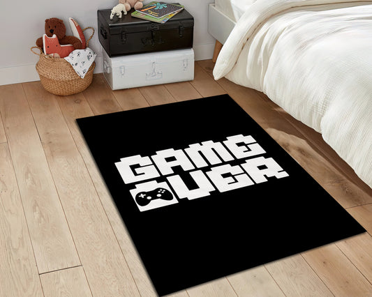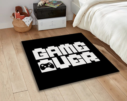 Game Over Rug, Game Controller Carpet, Gaming Decor, Black Gamer Mat, Gift for Gamer