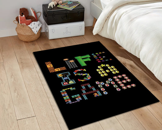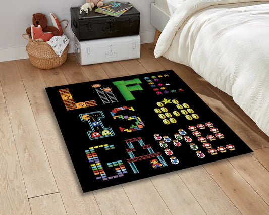 Video Game Rug, Game Room Decor, Life is a Game Mat, Gaming Rug, Gamer Carpet