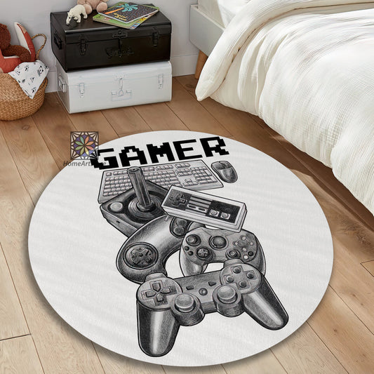 Game Controller Rug, Pencil Drawing Gamer Carpet, Game Room Mat, Gaming Decor, Gift for Gamer