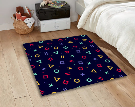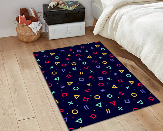 Colorful Geometric Game Rug, 90s Arcade Gamer Carpet, Nostalgic Game Room Mat, Gift for Gamer