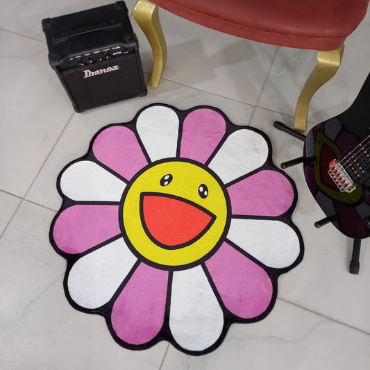 Takashi Murakami Rug, Pink Daisy Flower Carpet, LGBT Decor, Hypebeast, Sneakerhead Gift