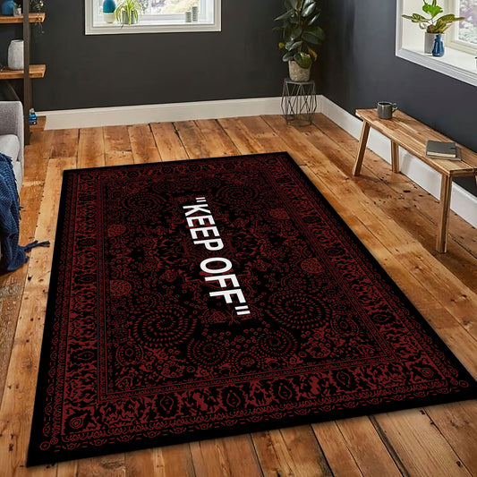 Burgundy Keep Off Themed Rug, Off White Carpet, Popular IKEA Carpet, Hypebeast Rug, Virgil Abloh Rug, Street Fashion Decor, Sneaker Mat