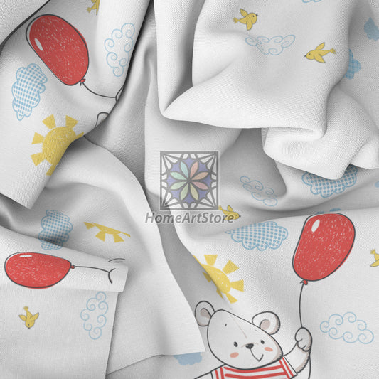 Bear and Balloon Themed Curtain, Cute Baby Room Curtain, Nursery Decor, Baby Shower Curtain, Baby Gift
