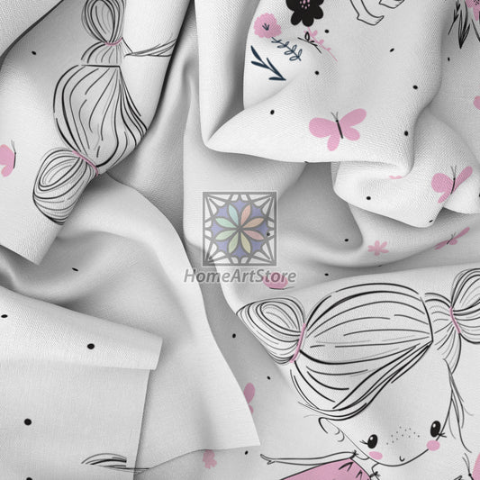 Cute Girl Printed Curtain, Kids Room Curtain, Flower and Butterfly Themed Curtain, Girl Room Curtain, Nursery Decor