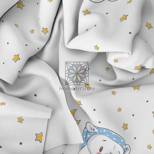 Cute Bear Curtain, Moon and Star Themed Curtain, Baby Boys Room Curtain, Blue Color Bear Curtain, Baby Boy Gift