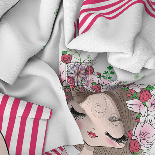 Cute Girl Themed Curtain, Floral Pattern Curtain, Baby Girl Room Decor, Flower Curtain, Nursery Curtain, Striped Curtain