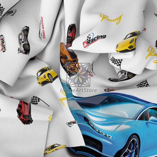 Blue Race Car Curtain, Car Patterned Curtain, Baby Boys Room Decor, Nursey Curtain, Baby Shower Curtain