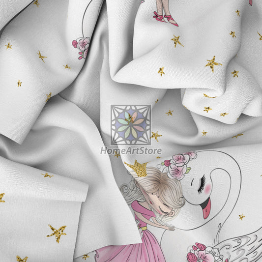 Sweet Princess with Themed Curtain, Swan Curtain, Pink Nursery Curtain, Girl Room Decor, Floral Curtain