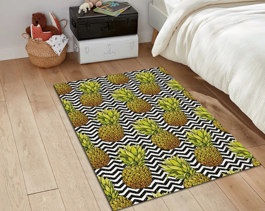 Pineapple Pattern Rug, Dining Room Carpet, Kitchen Rug, Fruit Themed Mat, Tropical Decor