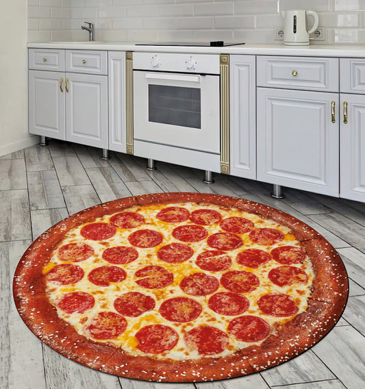 3D Pizza Rug, Kitchen Decor, Dining Room Round Mat, Real Looking Pizza Carpet