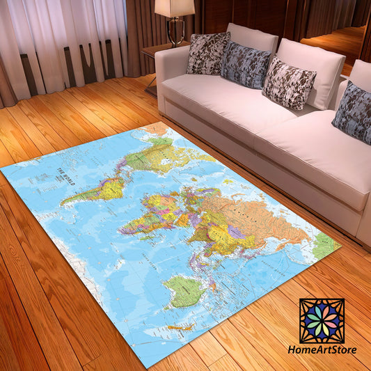 World Map Rug, Educational Carpet, Office Mat, Playroom Carpet, School Rug, Nonslip Washable Floor Mat