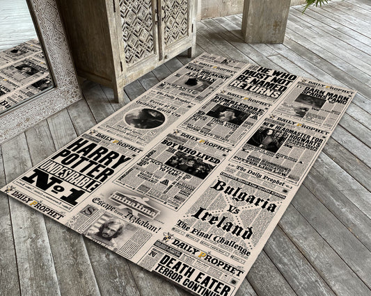 Harry Potter Daily Prophet Rug, Vintage Harry Potter Newspaper Carpet, Movie Room Decor, Fantastic Movie Mat