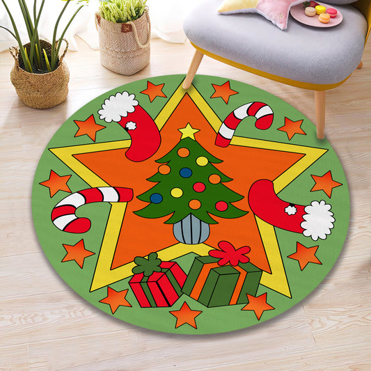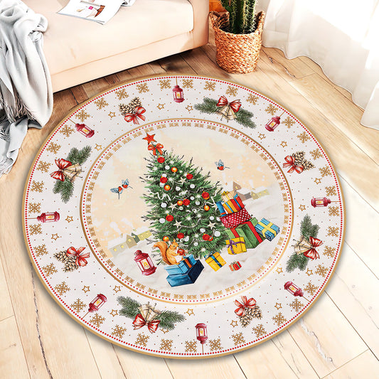 Christmas Tree Themed Rug, Xmas Round Carpet, Christmas Ornaments, New Year Mat, Christmas Gift