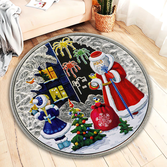 Vintage Christmas Rug, Nostalgic Christmas Carpet, Xmas Round Mat, New Year Decorations, Christmas Gift