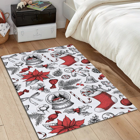 Christmas Rug, Snow Globe Themed Carpet, Christmas Ornament Rug, Xmas Mat, New Year Gift