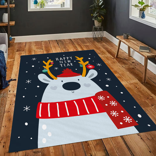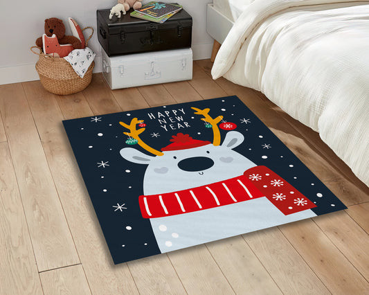 Christmas Rug, Happy New Year Rug, Reindeer Themed Carpet, Xmas Decor, New Year Gift