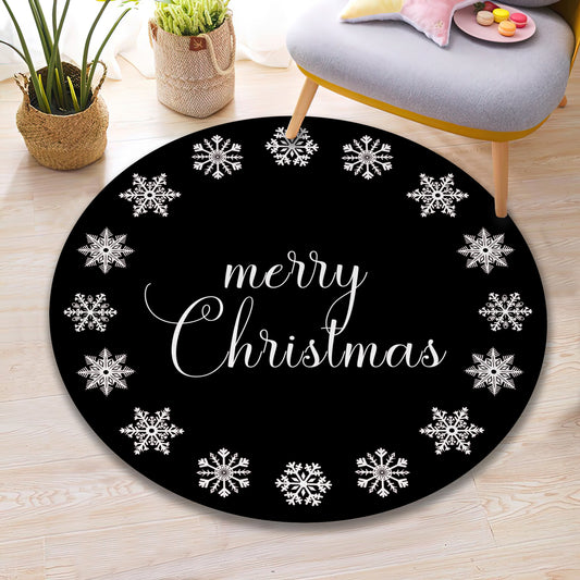 Black Merry Christmas Rug, Snowflake Carpet, Xmas Decor, Christmas Round Mat, New Year Gift