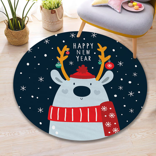 Happy New Year Rug, Reindeer Themed Carpet, Christmas Mat, Snowflake Carpet, Xmas Decor, New Year Gift