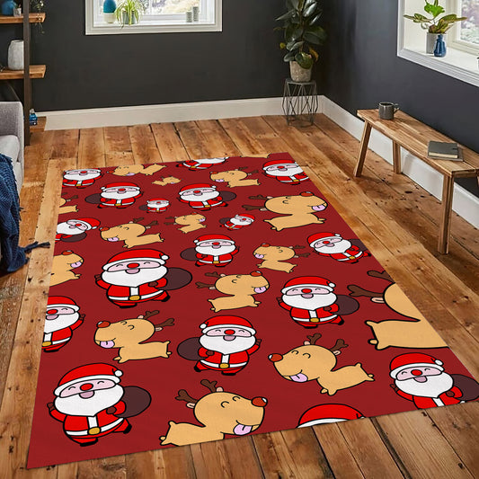 Santa Claus Themed Rug, Christmas Rug, New Year Decor, Reindeer Pattern Carpet, Christmas Gift