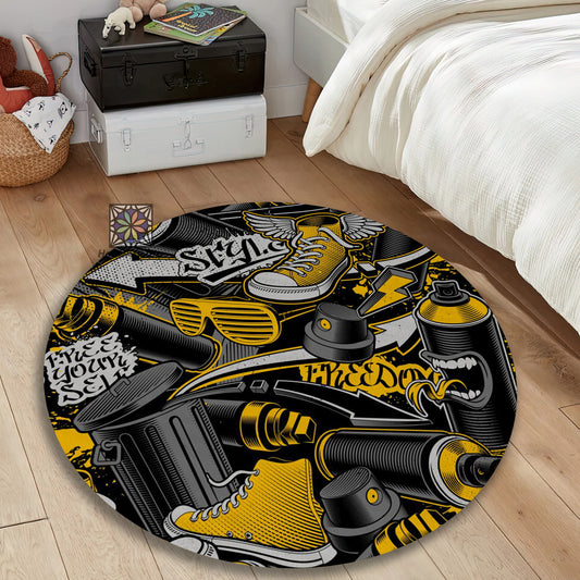 Graffiti Art Rug, Sneaker Room Carpet, Street Fashion Decor, Sneaker Round Mat