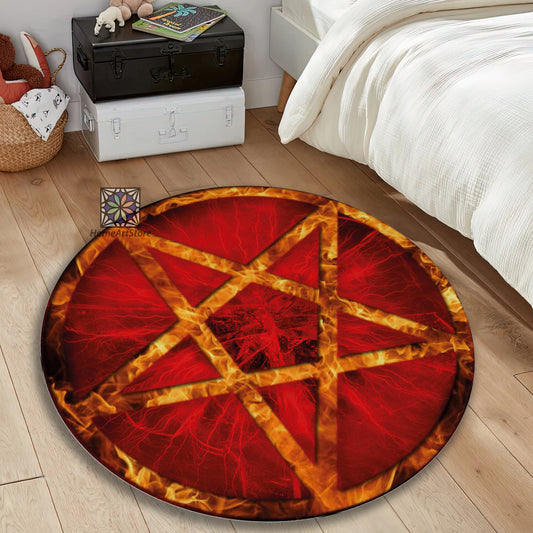 Pentacle Symbol Rug, Devil’s Trap Carpet, Pentagram Mat, Red and Gold Satan Rug