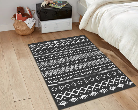 Boho Style Rug, Black Tribal Mat, Vintage Ethnic Carpet, Living Room Rug, Aztec Decor