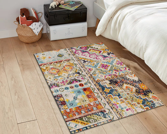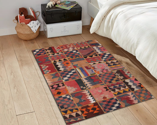 Vintage Ethnic Rug, Colorful Patchwork Carpet, Living Room Rug, Boho Style Home Decor
