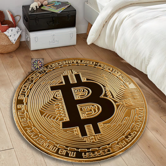 Bitcoin Rug, Gold and Black Money Carpet, Krypto Rug, Office Round Mat, Decorative Home Decor