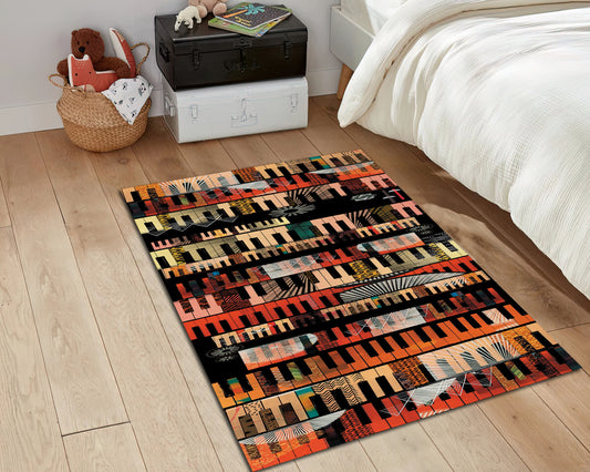 Piano Keys Rug, Music Art Carpet, Retro Style Musical Mat, Living Room Rug, Music Gift