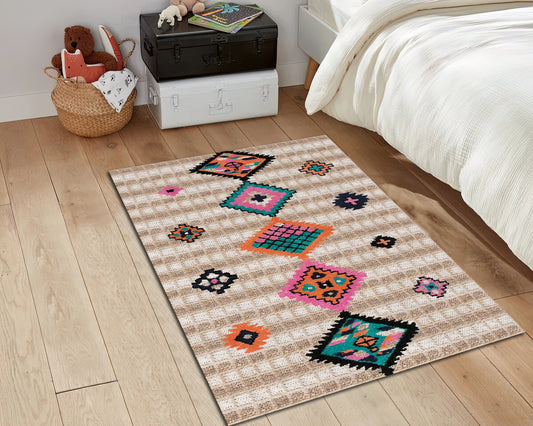Aztec Rug, Colorful Tribal Carpet, Ethnic Decor, Bedroom Mat, Boho Style Rug