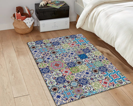Mosaic Tile Pattern Rug, Turkish Motif Carpet, Kitchen Mat, Modern Decor, Bohemian Rug