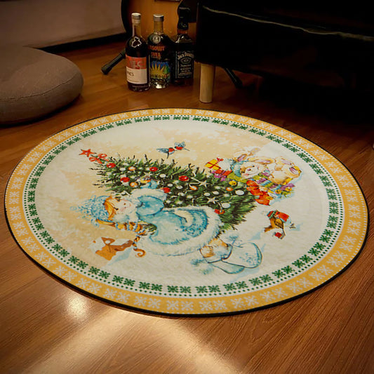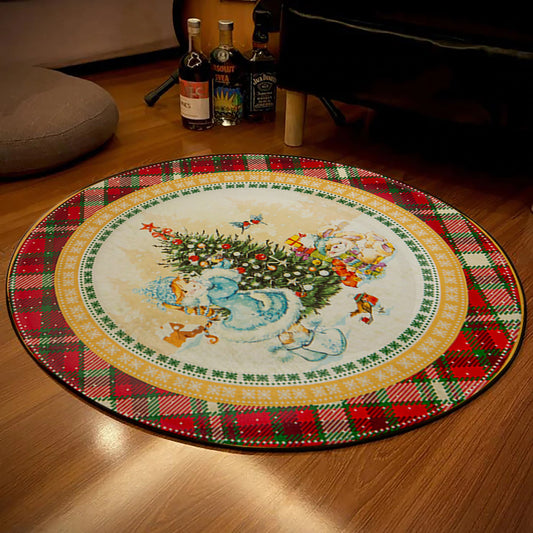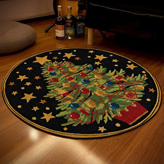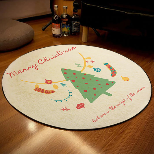 Christmas Tree Themed Rug, Christmas Round Mat, Retro Style Merry Christmas Carpet, New Year Gift
