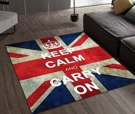 British Flag Rug, Keep Calm Carpet, Flag Themed Office Mat, Living Room Decor, Office Gift