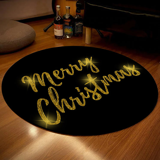 Black and Gold Glitter Christmas Rug, Merry Christmas Text Carpet, Holiday Rug, Christmas Gift