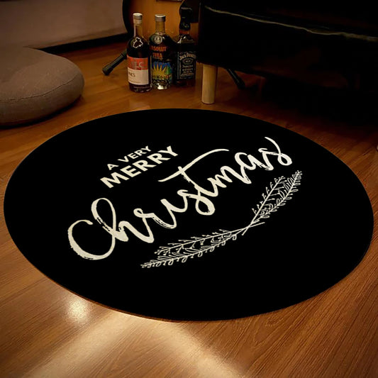 Black Merry Christmas Rug, Christmas Tree Decor, Christmas Home Decor, Holiday Mat