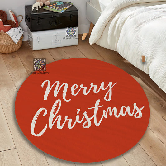 Red Color Merry Christmas Rug, Christmas Round Mat, Noel Decor, Party Gift