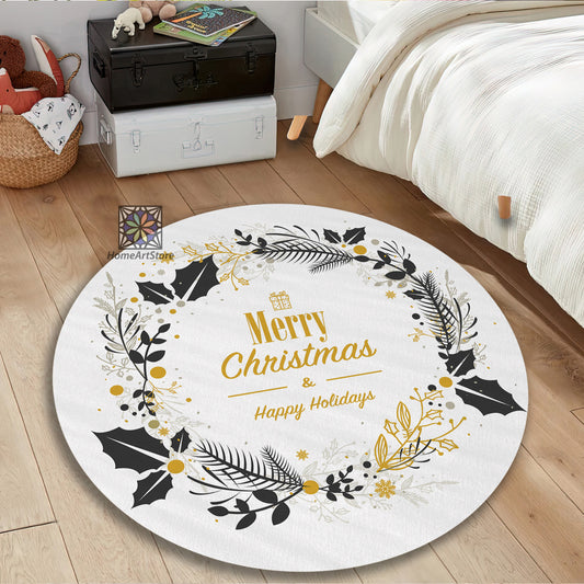 Black and White Christmas Rug, Round Christmas Carpet, Festive Christmas Decor, New Year Gift