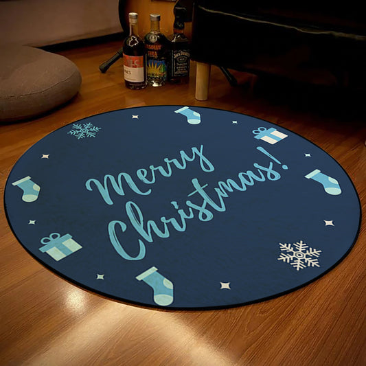 Christmas Rug, Merry Christmas Round Carpet, Christmas Ornament Mat, Blue Noel Decor, Christmas Gift