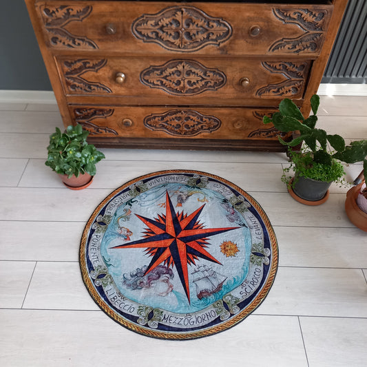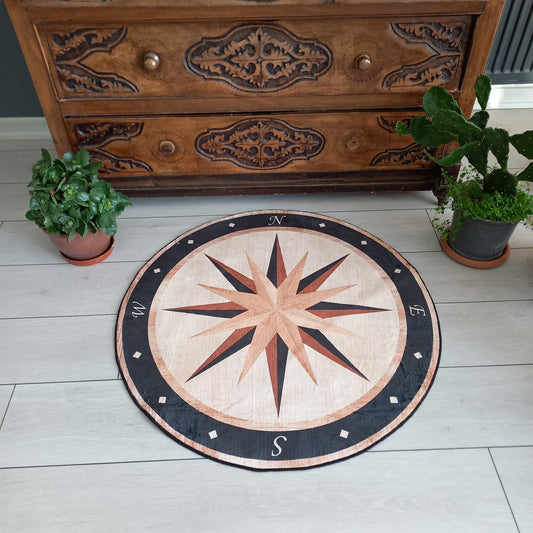 Compass Rose Rug - Yacht Round Carpet for Office Mat- Entrance Decor