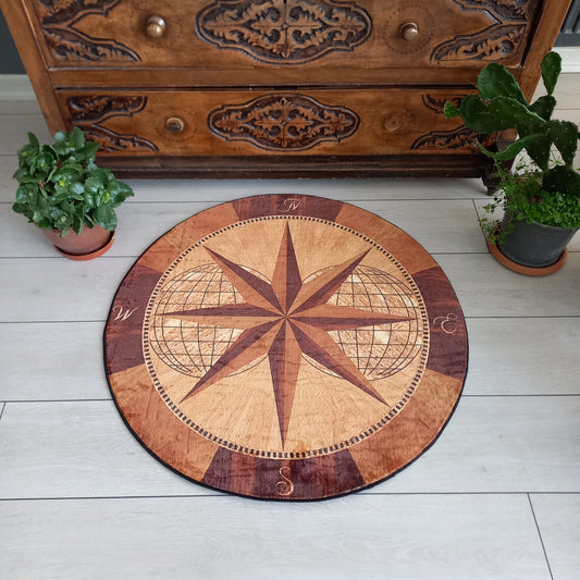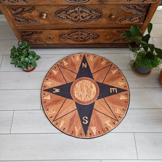 Wooden Compass Themed Carpet – Yacht Decoration, Entrance Mat, Office Area Carpet