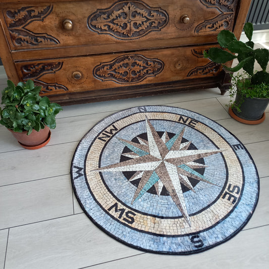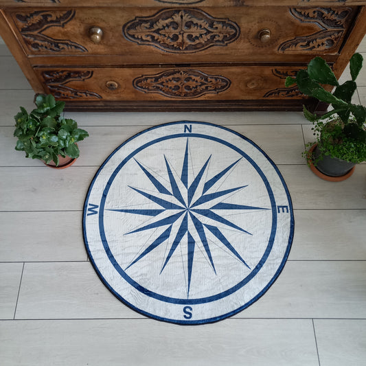 Blue Compass Carpet - Decorative Entrance Mat for Your Place, Yacht Round Carpet, Office Gift