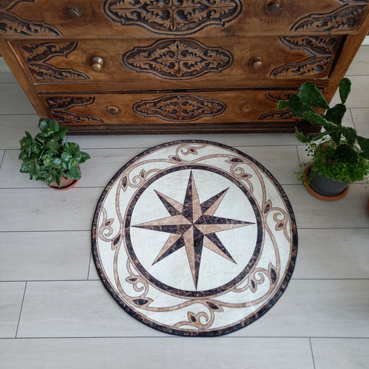 3D Ancient Stone Rug, Compass Carpet, Yacht Round Mat, Summer House Decor, Gift