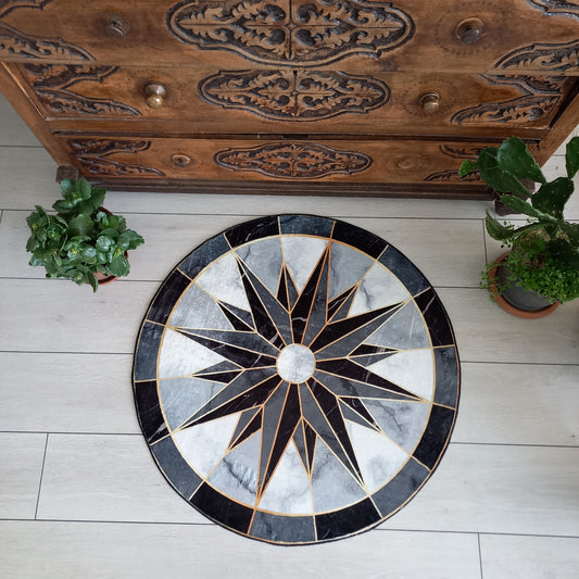 Compass Medallion Rug, 3D Vintage Compass Carpet, Office Decor, Luxury Living Room Mat
