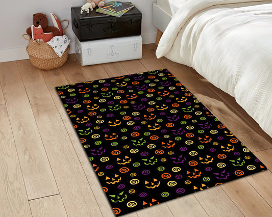 Happy Halloween Rug, Black Horror Carpet, Scary Decor, Pumpkin Pattern Rug, Halloween Party Gift