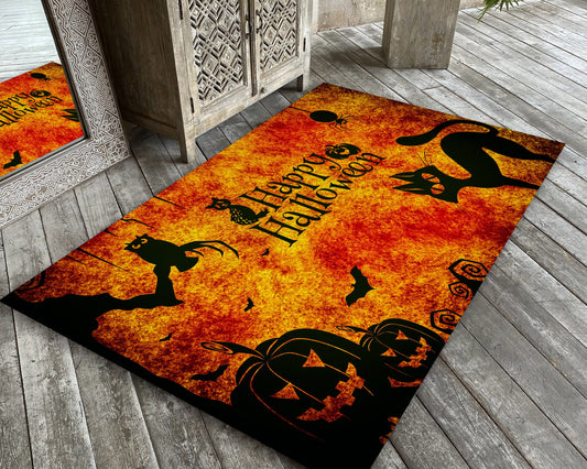 Happy Halloween Rug, Scary Carpet, Horror Decor, Pumpkin Themed Rug, Halloween Party Gift