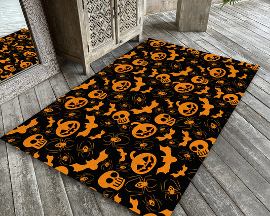 Halloween Rug, Pumpkin Carpet, Horror Decor, Skull Pattern Carpet, Gothic Mat, Halloween Party Decor