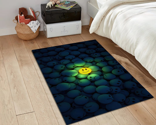 Smiley Face Rug, Emoji Carpet, Emoticon Area Mat, Cartoon Smile Decor, Smiling Symbol Decor, Sunny Face Rug